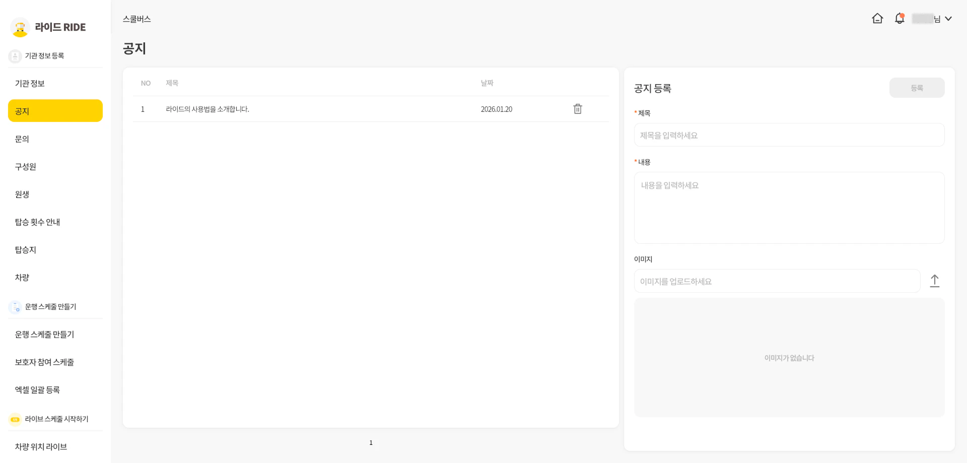 • 기관의 구성원에게 알릴 공지를 작성합니다.