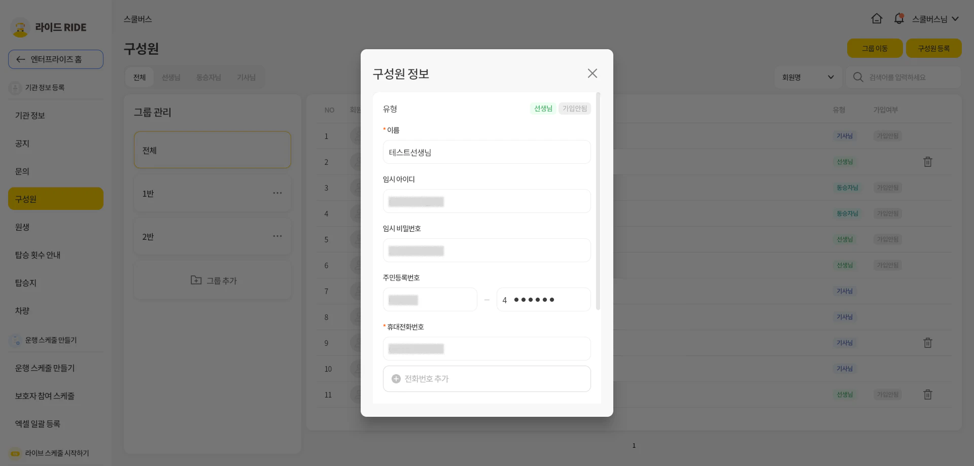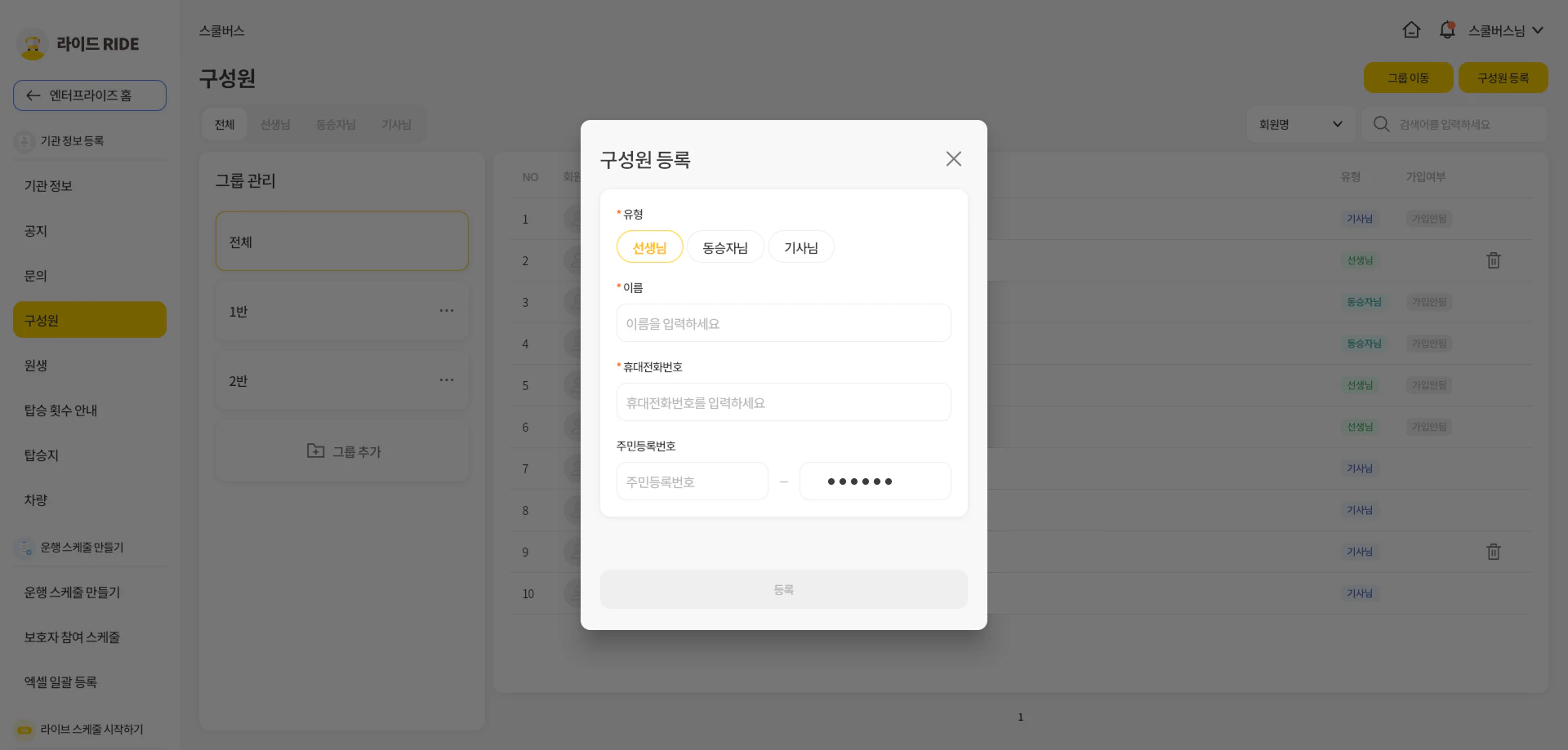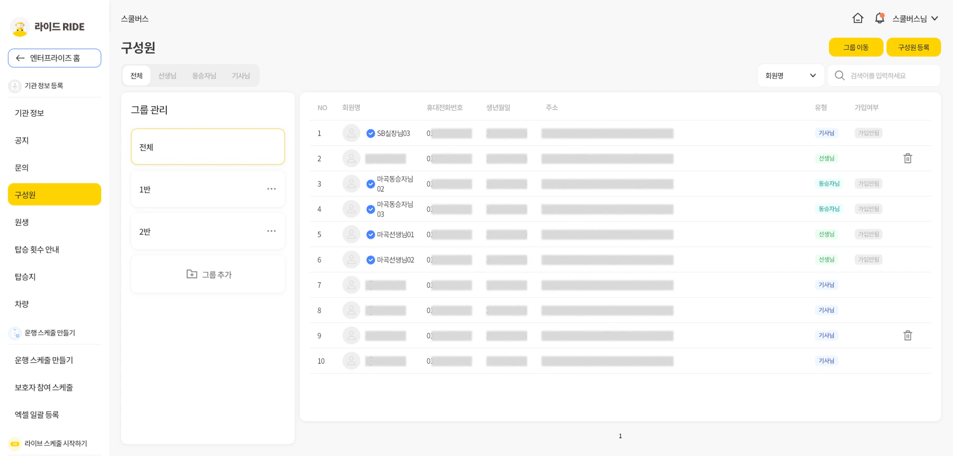 등록한 구성원은 기관에 소속되어 기관 관리, 스케줄 생성, 운행매니저로 라이브 운행이 가능합니다.