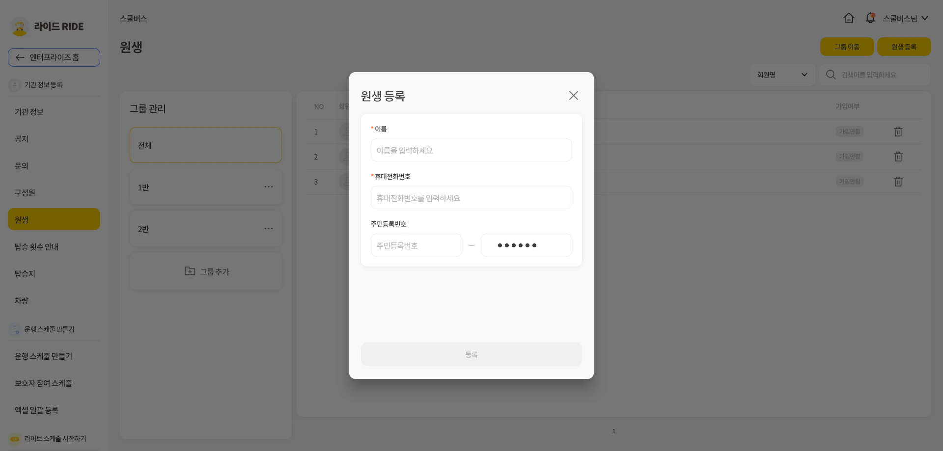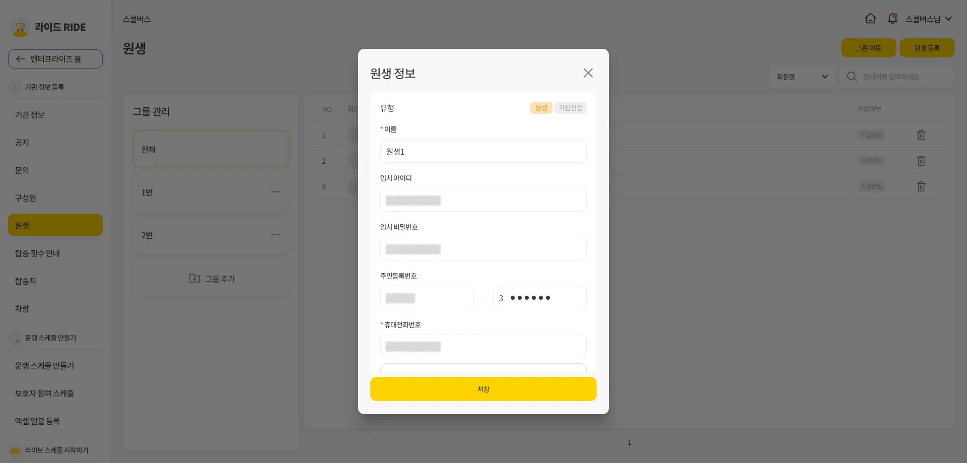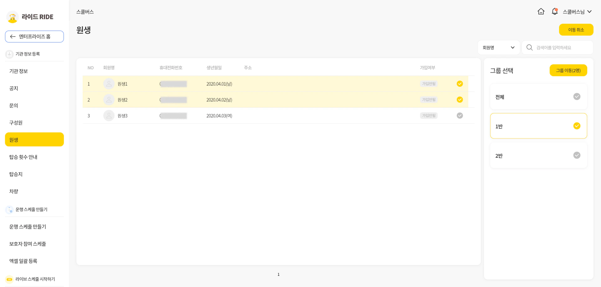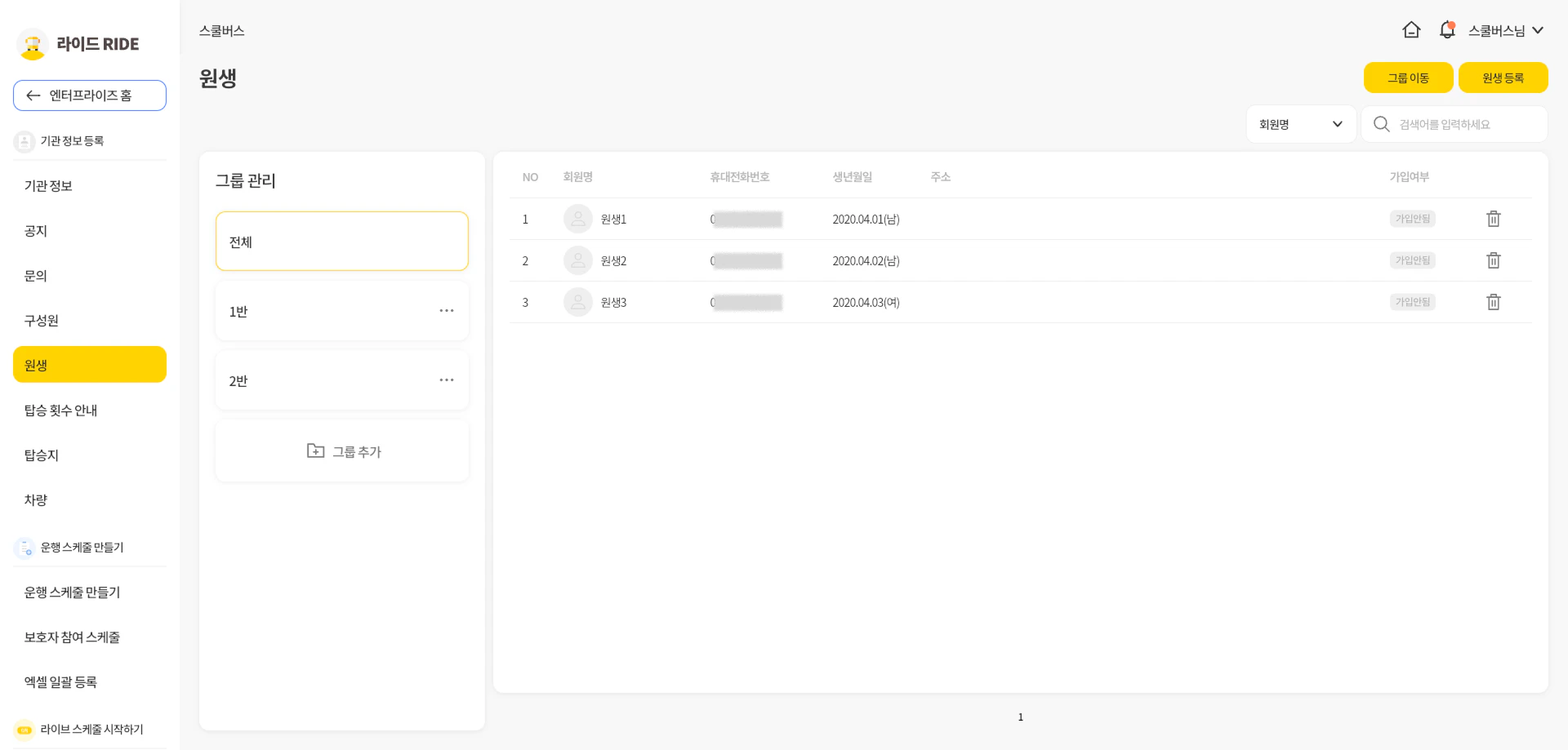 등록한 원생은 스케줄의 탑승지에 연결되어 라이브에서 승·하차가 가능합니다.